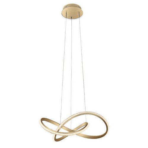 Ininity Pendant, 28 watt LED, 1400lm, made from Aluminium with Crystal Acrylic lens. 500mm dia x 1200mm high, finish Brushed Gold, Dimmable Driver built in to the ceiling plate